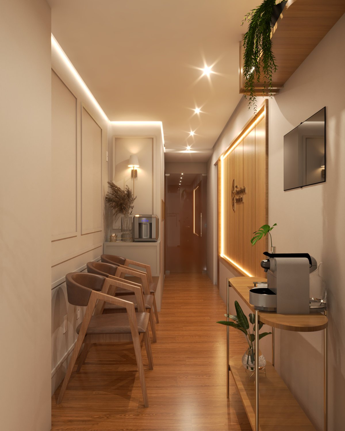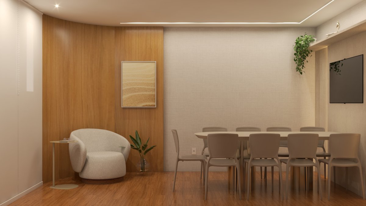 Esta clínica de psicologia foi projetada para transmitir leveza e tranquilidade, com uma paleta suave, iluminação acolhedora e mobiliário contemporâneo. O espaço busca criar uma atmosfera de bem-estar e conforto, favorecendo o acolhimento e a escuta atenta